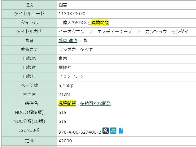 (下の例では、「持続可能な開発」をクリックすると同じテーマや事柄の本の一覧が表示されます。)
