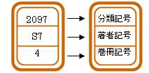 請求記号は3段に分かれていて、1段目を分類記号、2段目を著者記号、3段目を巻冊記号といいます。